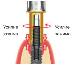 Выберите необходимый размер ключа с обратным вращением. Присоедините его к 6-гранной отвертке и затяните по часовой стрелке к импланту.