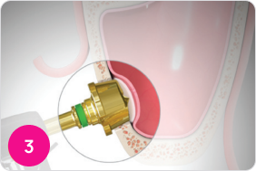 Сформируйте латеральный доступ с помощью LS-риммера. Держите риммер в вертикальном устойчивом положении во время сверления. Обе стороны лезвия риммера должны контактировать с костью на всем протяжении сверления. Скорость сверла 2000 об/мин.